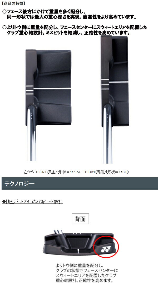 ドライバー 1W ウッド スプーン 3W バフィ 4W クリーク 5W 7W 9W ユーティリティ ハイブリッド UT アイアン型 ウッド型 アイアンセット クラブセット キャディバッグ付き ウェッジ サンドウェッジ ピッチングウェッジ SW AW PW DWアプローチ パター PUTTER ピン型 マレット型 ネオマレット型 L字型 中尺 長尺 レディス レディース ジュニア 女性 子供 Men 男 中年 若年者 高齢者 ゴルフ クラブ 軟らかい 硬い 飛ぶ スピン 曲がる 練習 コース プレゼント プロ 使用 仕様 トーナメント ゴルフ場 上司 喜ぶ 父の日 母の日 日本 アメリカ 国産 軟鉄 鍛造 カップフェース チタン フルチタン アドレス インパクト カップ グリーン シャンク シャフト 棒 ゴルフクラブ ボール 球 白い 青い 緑 ブルー 黒 ブラック ホワイト ショートアイアン スライス フック 矯正 ソール ダフル チョロ トップ ドロップ ネック ニアピン ホールインワン コンペ 幹事 バックスピン パッティング ライン パット ビジター フェアウェイ 池 川 河川敷 ミドルアイアン ヤード メートル ライ ラウンド ショートコース 本コース ランニング アプローチ ルール ロフト ロングアイアン 2015 2016 ブレード型 ピン型 2014 ゴルフ アルミヘッド 国内自社工場でシャフトを生産するヨネックスだからこそ生み出せる新開発タングステン複合グラファイトシャフトの装着によって、ロングパットが90%以上の確率で1パット圏内に寄り、1mのパットが90%以上の確率で入るパターが誕生しました。