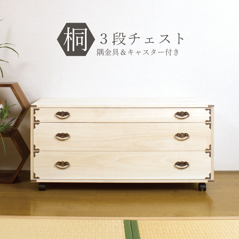 桐洋風チェスト 3段 生地仕上げ【】【桐】【天然木】【チェスト】【たんす】【日本製】 【大川家具】【02P24Oct15】【smtb-k】【kb】【RCP】